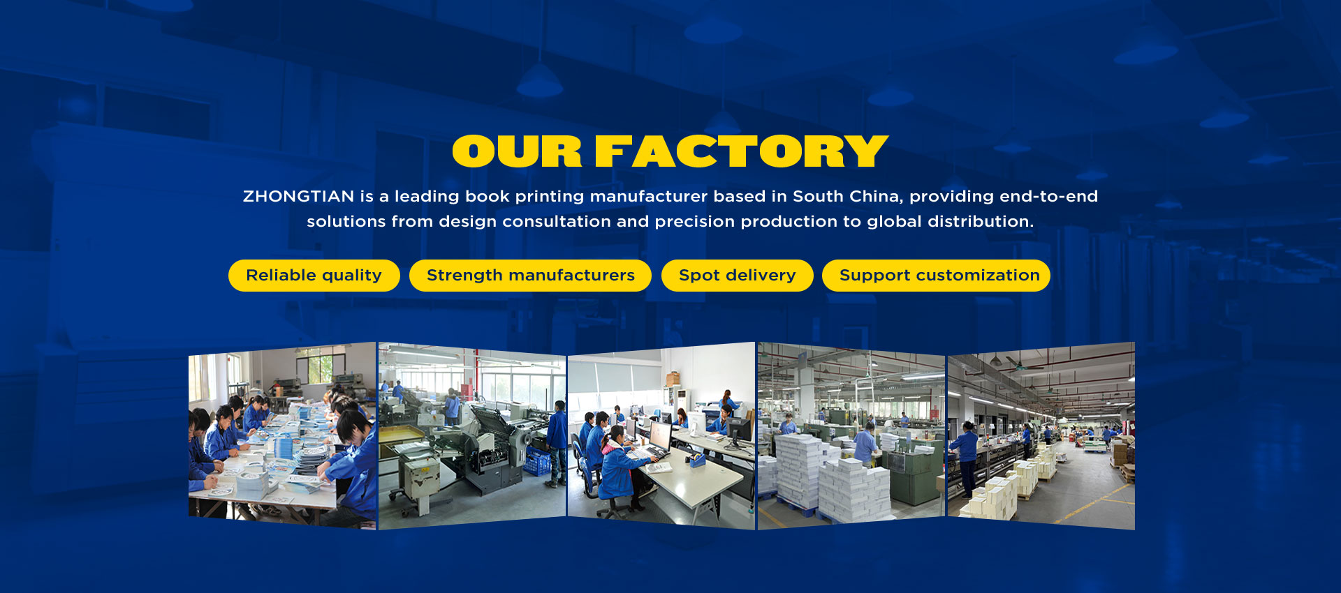 ZHONGTIAN is a leading book printing manufacturer based in South China, providing end-to-end solutions from design consultation and precision production to global distribution. Our experienced international team ensures high-quality printing for all kinds of books, boxes, and custom paper products, all tailored to your specifications. With advanced technology and a focus on efficiency and customer service, we offer competitive pricing, fast turnaround, and reliable results—making us a trusted one-stop partner for publishers, retailers, and creators worldwide.